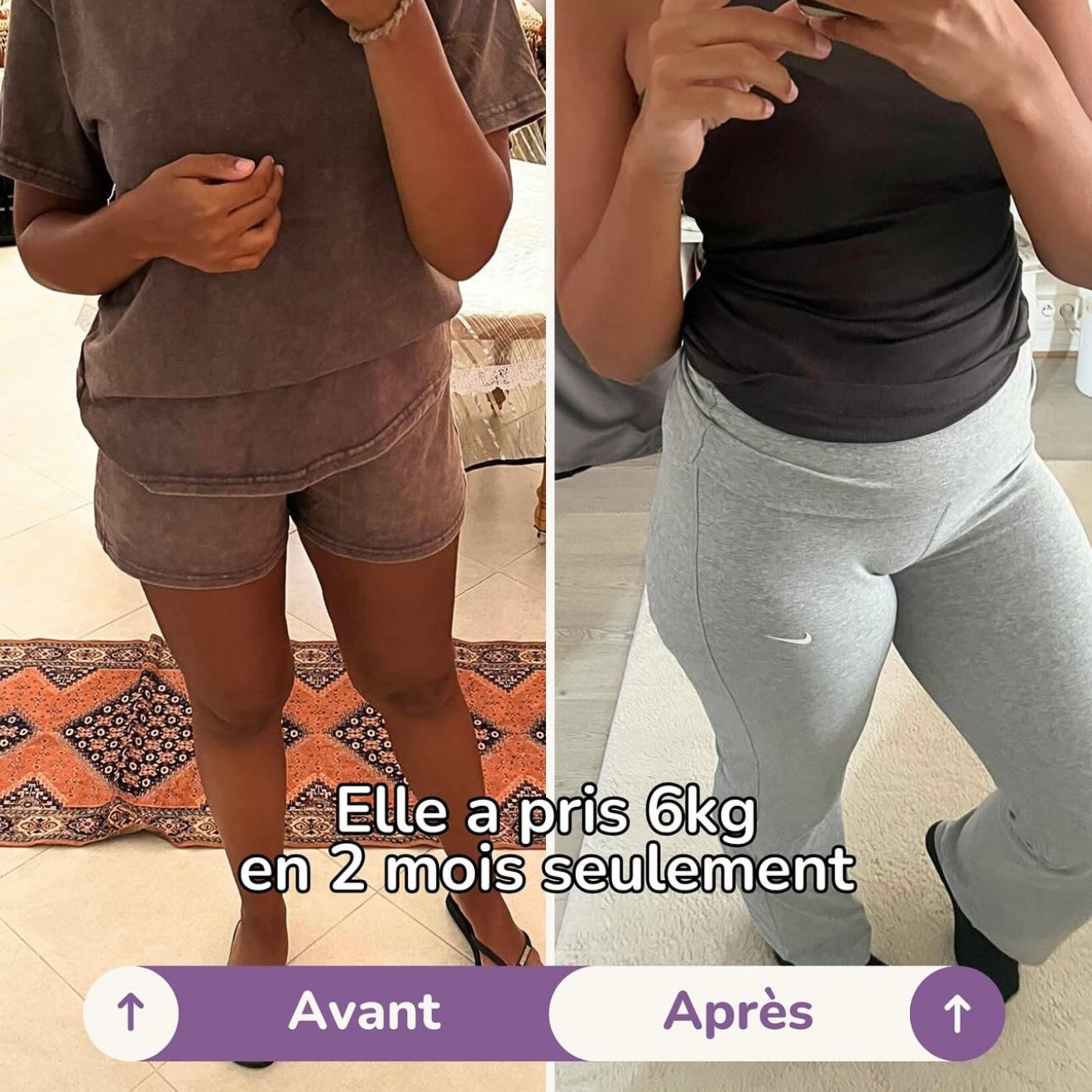 Je te remercie encore avant c’était impossible de prendre du poids je faisais 42 kg et maintenant 47 kg je me sens beaucoup mieux